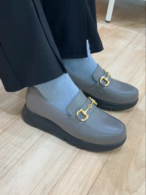 シックな印象の厚底ローファー⚜️幅広4Eでクッション性も良く、長時間歩いても疲れにくいアイテムです✨靴下にも合わせやすく様々な服にお使いいただけます🍂