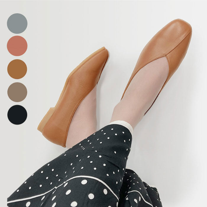 当ショップの人気No.1カジュアルシューズです。シンプルで可愛い形なのでどんなスタイルにも合わせやすいのが人気の理由。秋らしいオシャレなカラー展開も魅力で、履き口のVカットで足が綺麗に見えるのもポイント。クッション性も良く普段履きにもピッタリです。