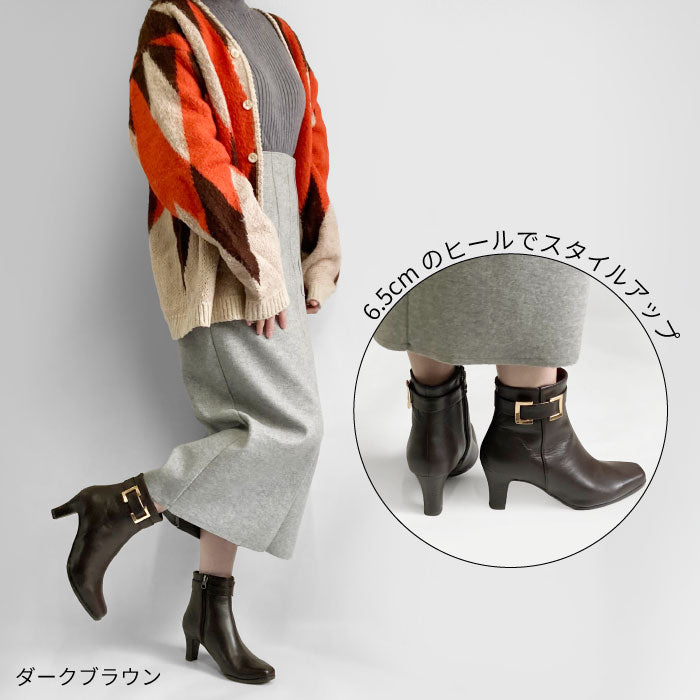 Yukiko Kimijimaらしいエレガントなブーツが新登場しました。ヒールも6.5cmと美脚効果も高くシルエットを美しく、クラシックな雰囲気に仕上げてくれます。アクセントとなるバックルデザインと なめらかな革の質感が際立ちます。コーディネートを格上げしてくれるブーツです。