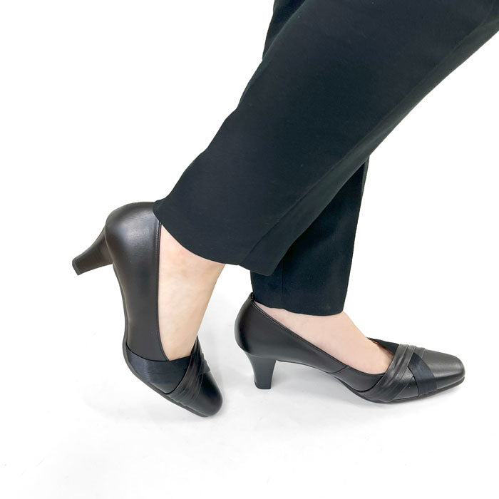 ユキコキミジマを代表するヒールパンプスです。スムースとサテン生地のクロスデザインが美しくエレガントなデザイン。履き心地も良くクッション性にも優れています。ヒールの好きな方にはぜひ一度お試し頂きたい商品です。