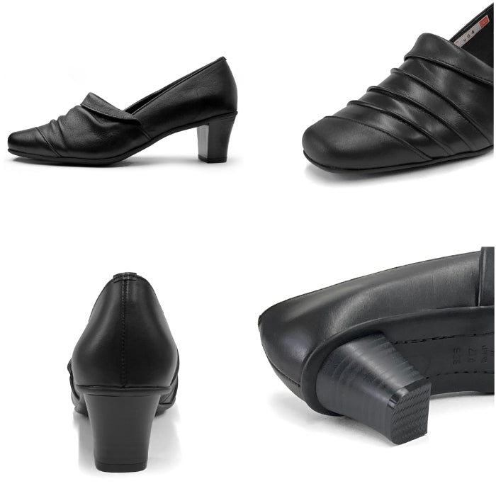 ユキコキミジマのカジュアルパンプスです。甲部分のシャーリングデザインが柔らかい印象を与えてくれる人気商品です。ヒールの高さを感じない履き心地の良さもポイントです。屈曲性に優れたソールを使っているので歩きやすさが違いますよ。