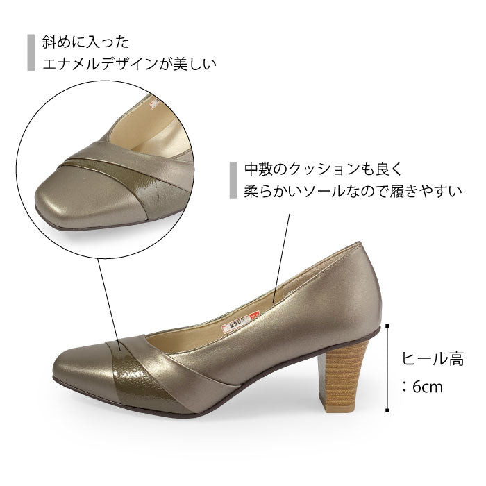斜めに入ったエナメルデザインが美しいユキコキミジマのレザーパンプス。シンプルで使いやすいデザインなので非常に人気の高い商品です。中敷のクッションも良く柔らかいソールなのでとても履きやすいですよ。