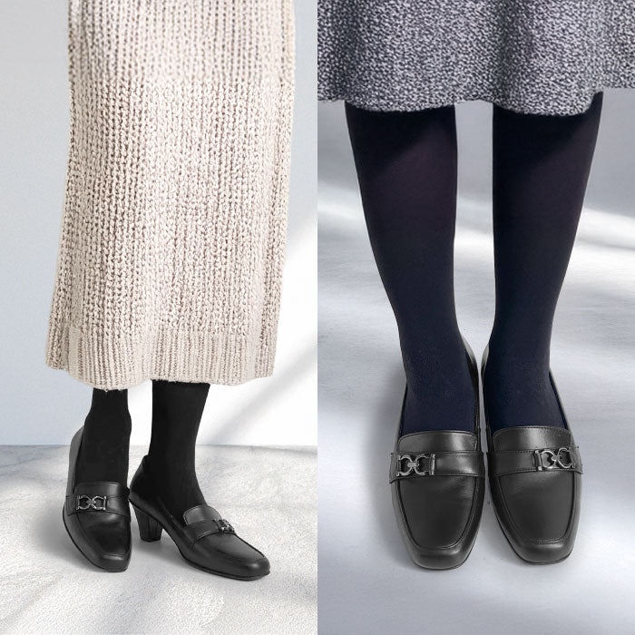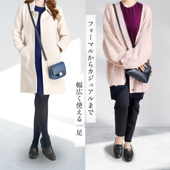 上品でオシャレな金具のついたユキコキミジマのローファーパンプスです。ヒールも太めで安定感があり柔らかいソールなので歩きやすいのもポイントです。フォーマルからカジュアルまで幅広く使えるアイテムです。