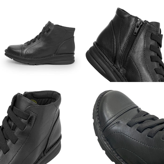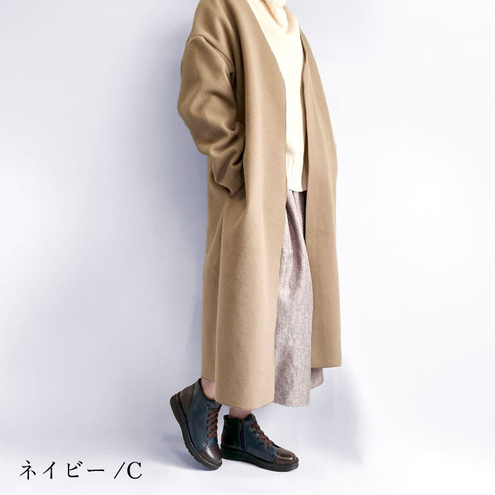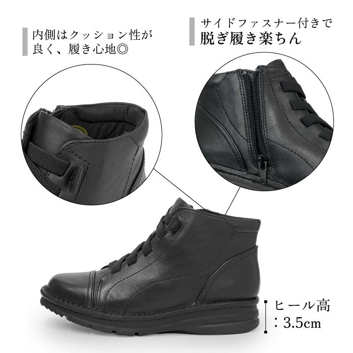 長時間履いても疲れにくいスニーカー風のらくちんブーツです。サイドにファスナーがついているので脱ぎ履きも簡単です。