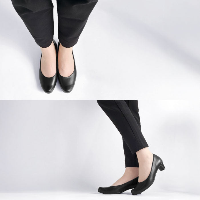 ちょうど良いヒールの高さでクッション性も◎。パンツでもスカートでも合わせやすいアイテム。フォーマルパンプスとしてもオススメです。