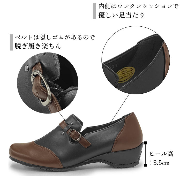 オシャレなコンビカラーのデザインで柔らかく上質なレザーを使った足にとても優しいスリッポンシューズです。当ショップでもトップクラスの履き心地の良さでリピーターの方も非常に多い人気商品です。